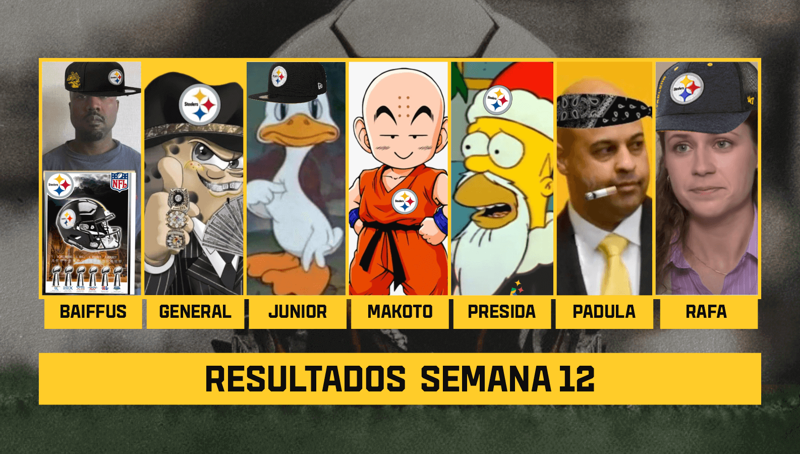 Veja como se saíram os ADM’s do Steelers Brazil na semana 12 de NFL: Já que o Steelers perdeu, todo mundo perde junto… Não tivemos
